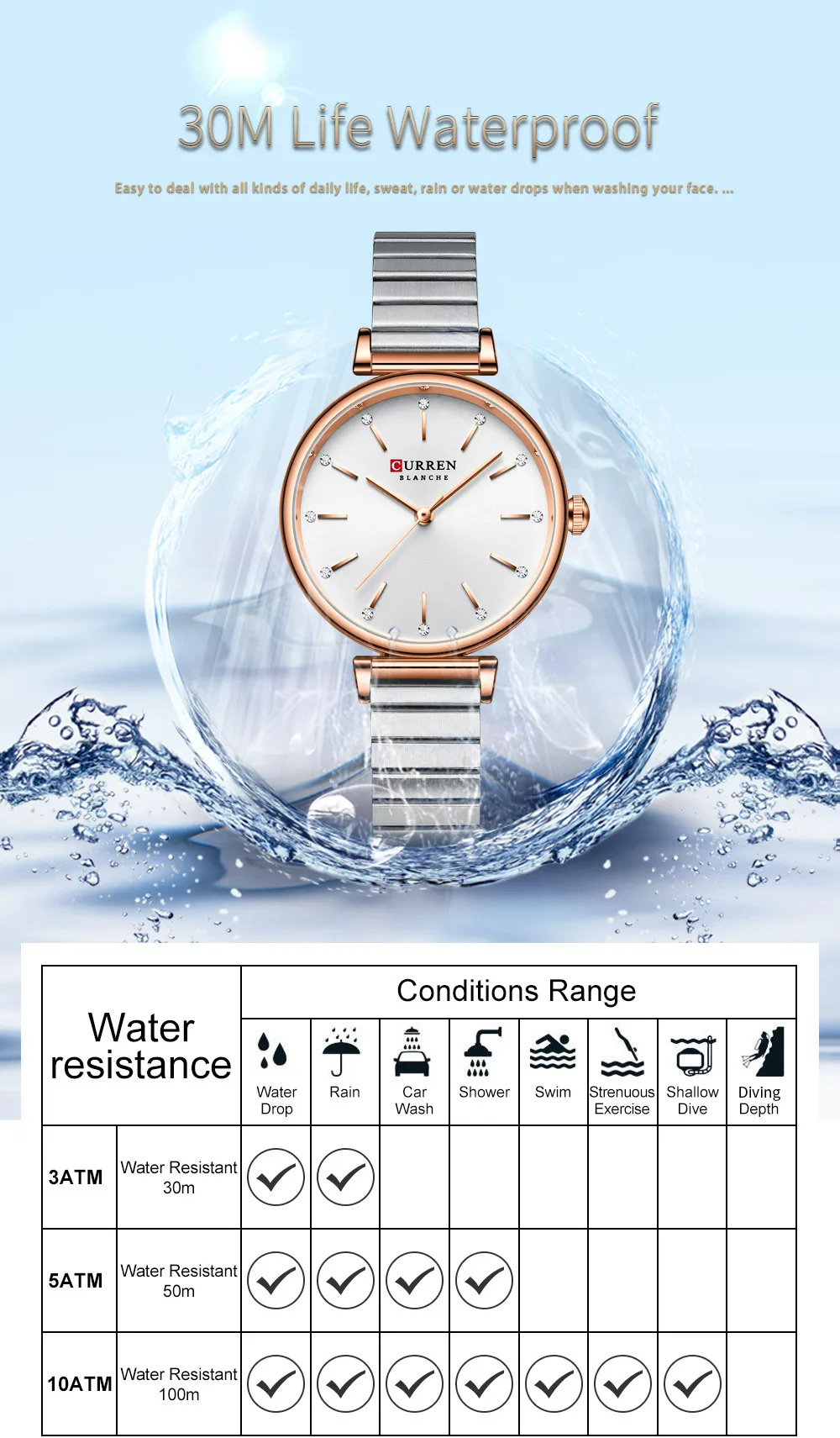 - Water Resistance Depth: 3Bar
