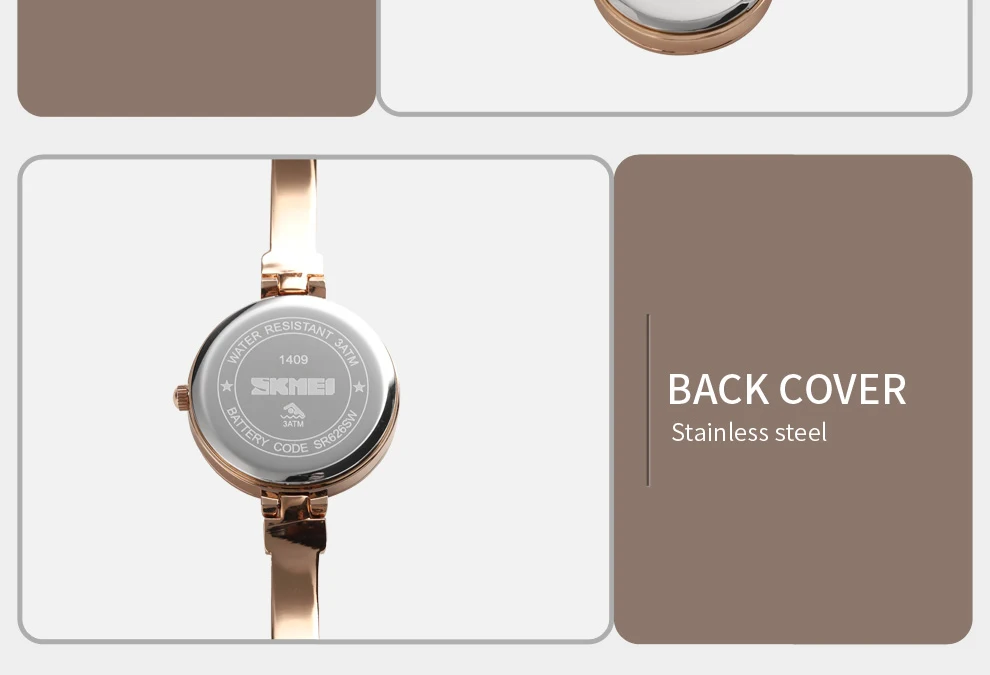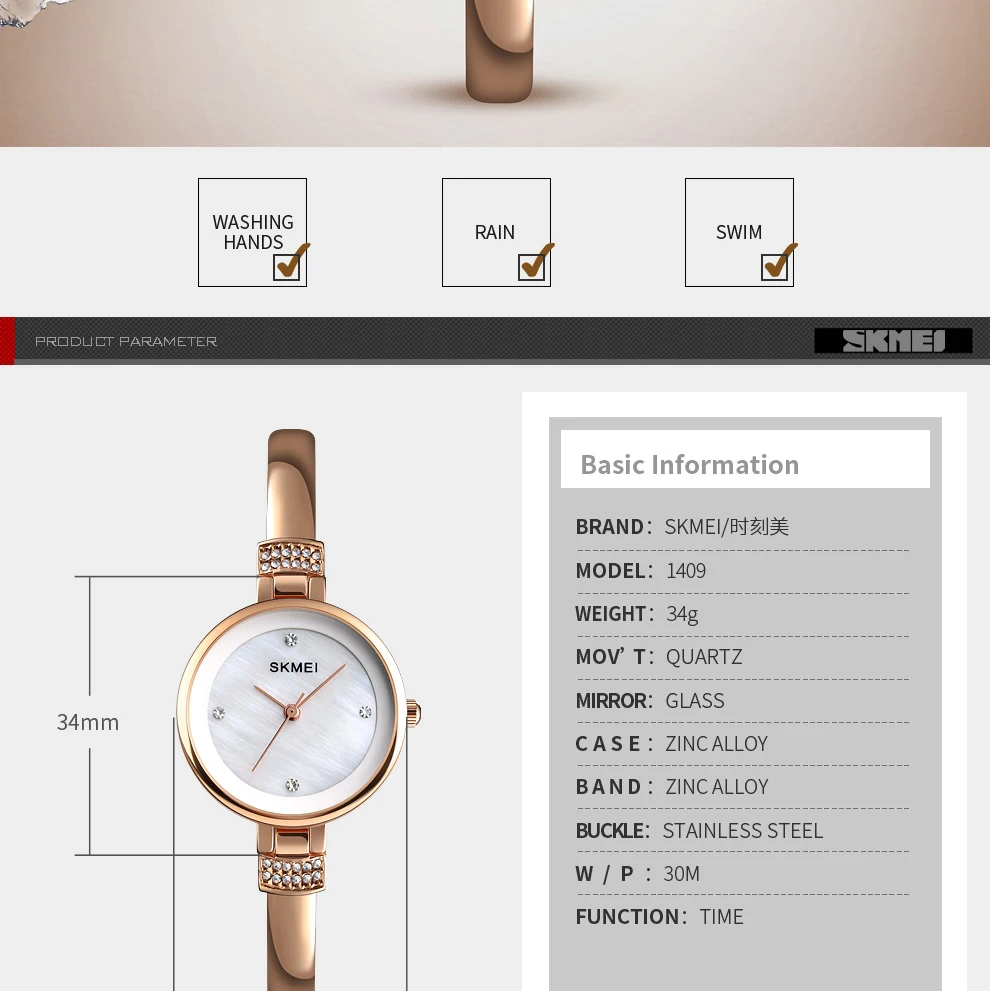 Skmei 1409 Fashion Casual Women Quartz Simple Dress Waterproof Alloy Strap Wristwatch