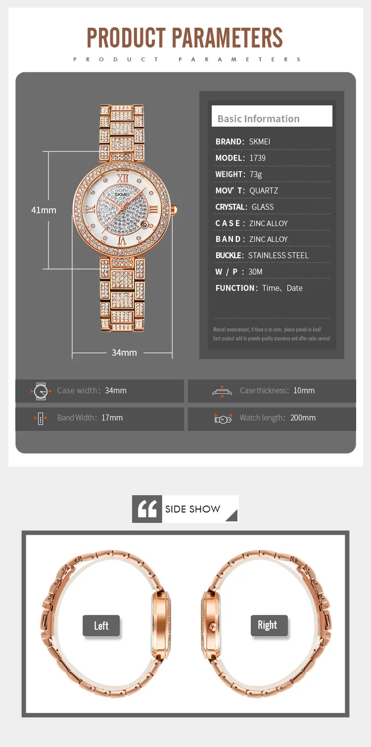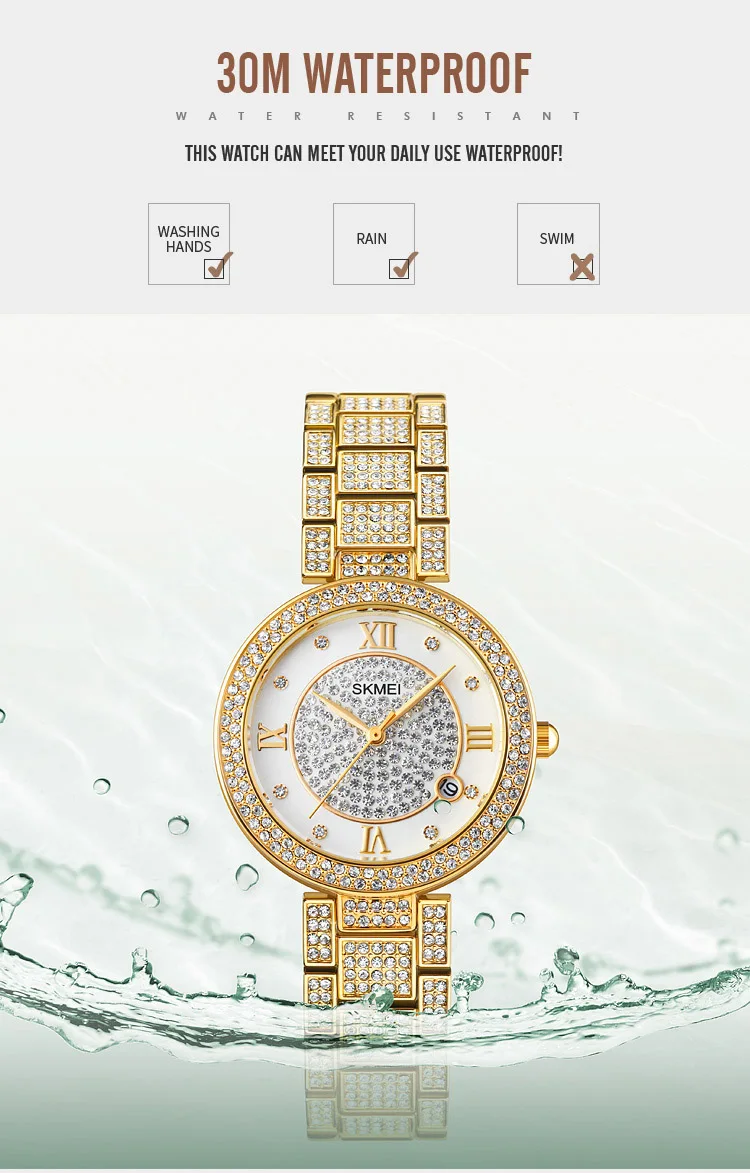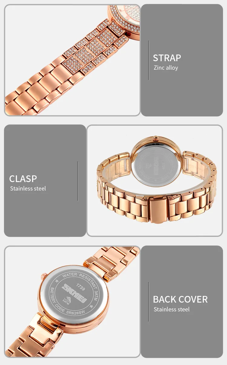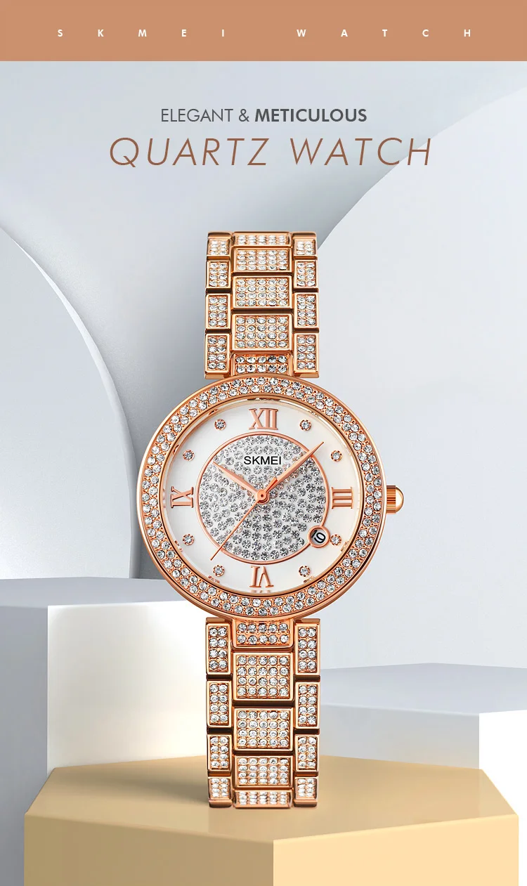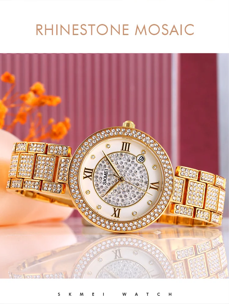 Skmei 1739 Party Wedding Fashion Phinestone Mosaic Womens Quartz Wristwatch